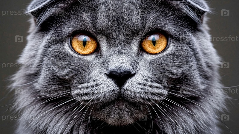 Портрет чистокровного шотландского кота в крупном плане, смотрящего на камеру