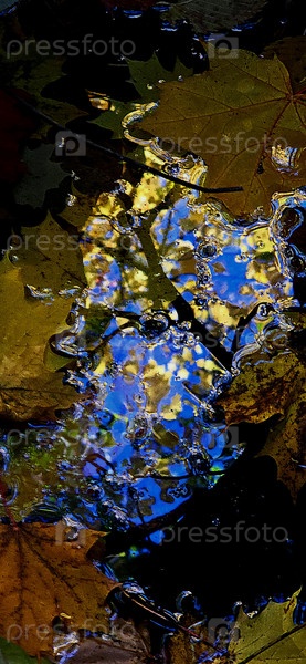 Небо, отраженное в луже осенью
