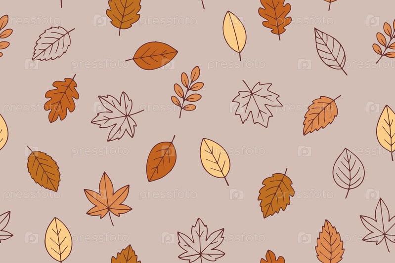 Бесшовный векторный рисунок с очертаниями листьев в стиле розыгрыша. Осенний фон из линейных многоцветных листьев. Понятие леса, осени и природы. Иллюстрация вектора