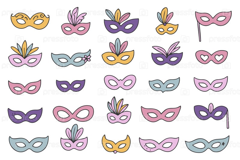 Коллекция карнавальных масок в стиле карнавала