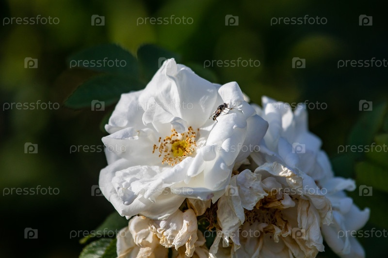 Белая роза с крупным снимком осы