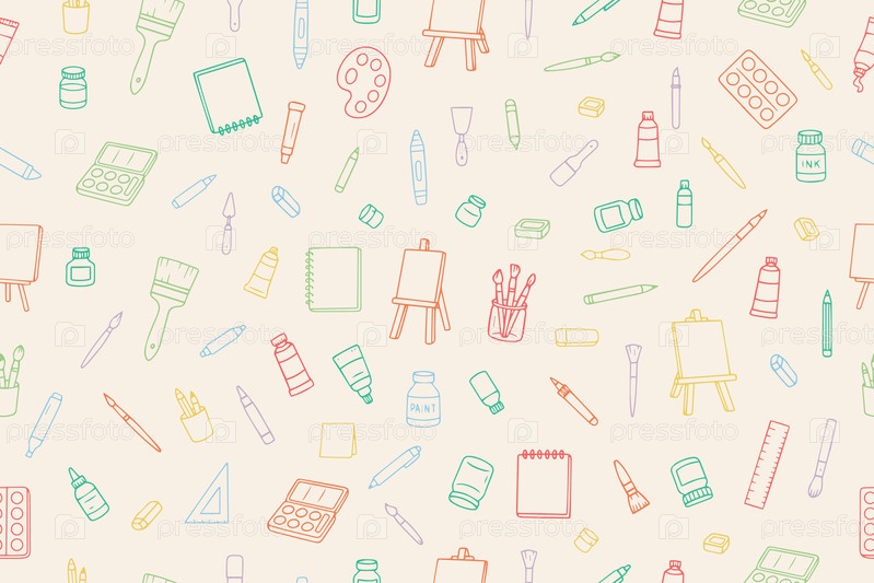 Яркий, красочный и бесшовный рисунок из материалов для художественного doodle