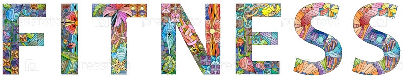 Рукописный художественный дизайн.Ручно нарисованное иллюстрированное слово FITNESS для футболки и другого украшения