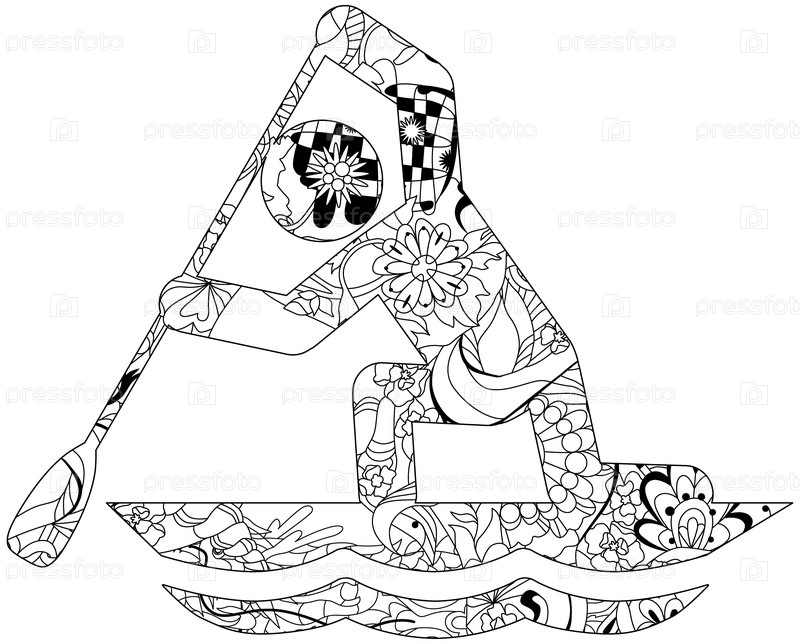 Спринт на каноэ для окраски. олимпийский вид спорта. абстрактный рисунок рук