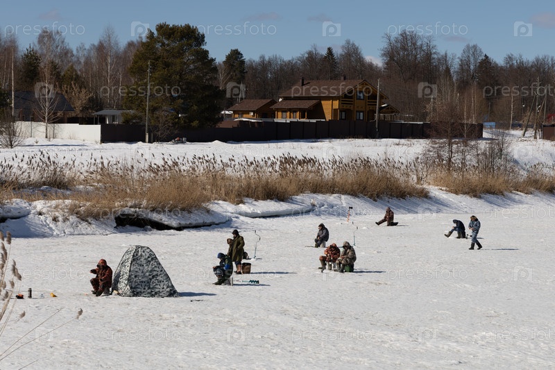 Зимняя рыбалка, рыбаки на замерзшей реке