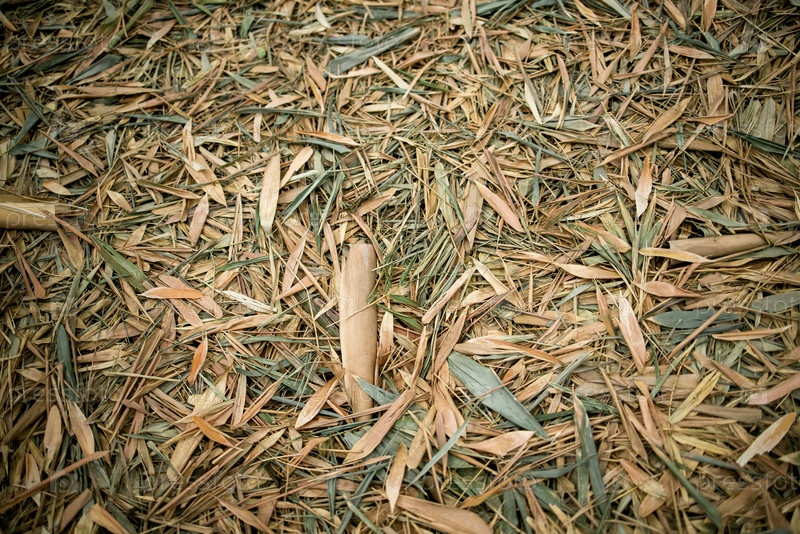 Естественное покрытие сушеными бамбуковыми листьями и ветвями, создавая текстурированную поверхность земли, демонстрируя красоту органических материалов в спокойной окружающей среде на открытом воздухе
