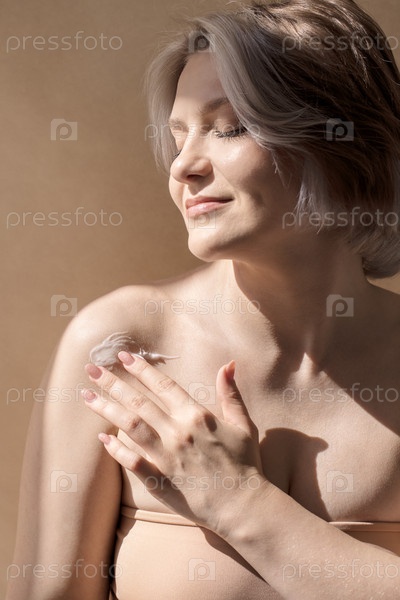Женщина с короткими светлыми волосами нежно касается ее плеча, демонстрируя мягкое перо, освещенное мягким естественным светом, создавая спокойную и спокойную атмосферу