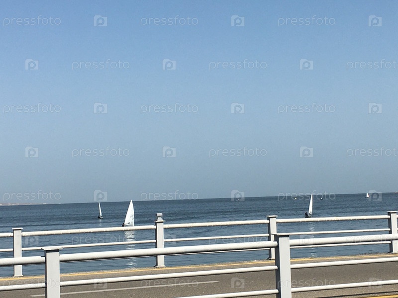 Парусные лодки в заливе Баку, Баку, Азербайджан
