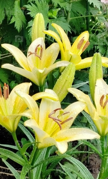 Лилии цветут в дождевых каплях