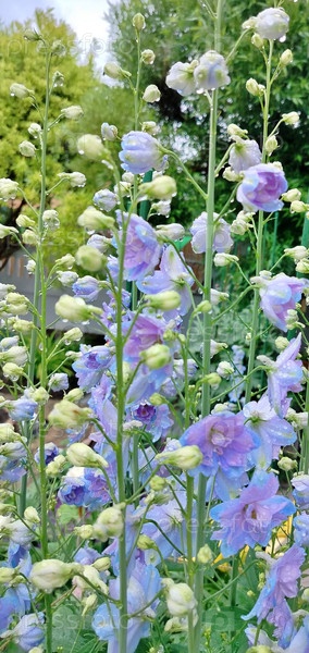 Цветки дельфиния с каплями дождя
