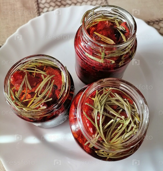 Сушеные помидоры, приготовленные для консервирования