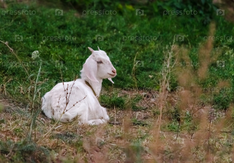 белый козел на зеленом фоне