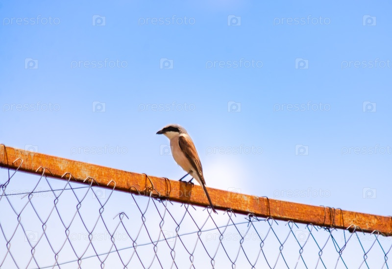 Птица-юлан, сидящая на ржавом металлическом заборе