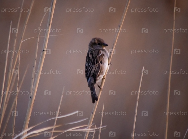Воробей на сухом тростниковом стебле