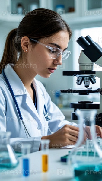 Женщина-лабораторный техник работает в лаборатории