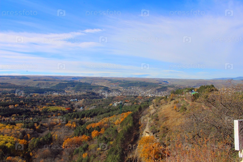 Вид на город с вершины осеннего холма