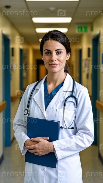 Врач с документами в руках и белым пальто идет осматривать пациентов