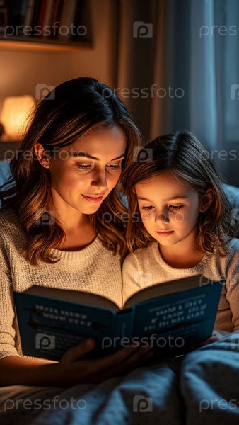 Семейное утешение, мать и дочь вместе читают книгу