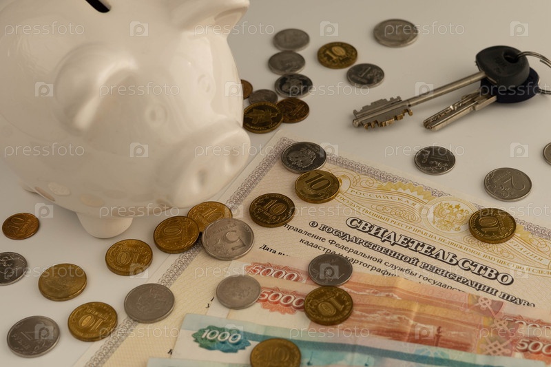 Карман, ключ, свидетельство о регистрации права собственности, российские бумажные деньги, монеты