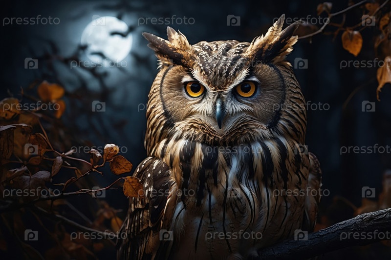 Сова-птица на темном пугающем фоне осенних праздников Хэллоуин AI Generative