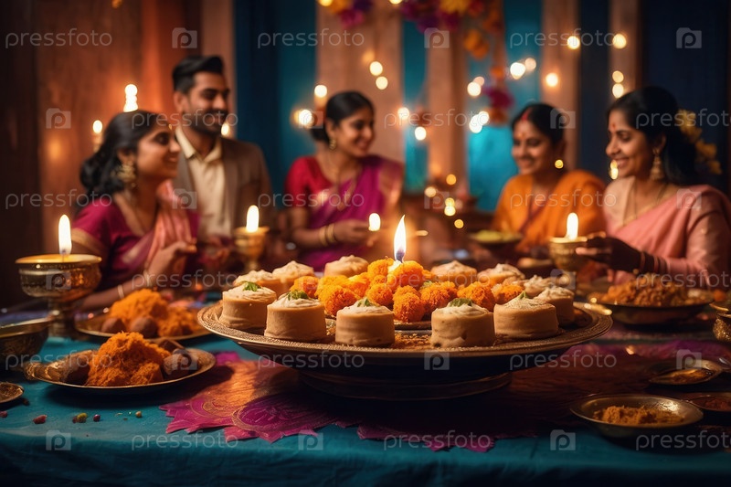 Дивали традиционные индийские блюда из карри, риса и сладостей, декоративный фон AI Generative