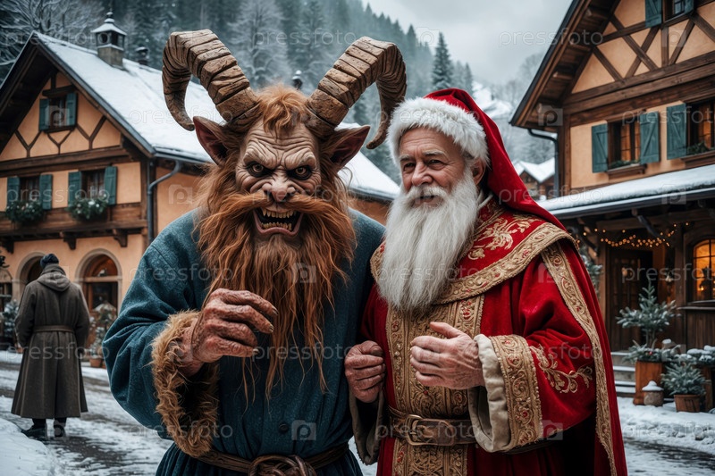 Генеративные герои Рождества Святой Николай и жуткое чудовище Крампус в день зимнего праздника