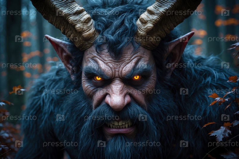 Австрийский и немецкий герой жуткое чудовище Крампус в ночь зимних праздников