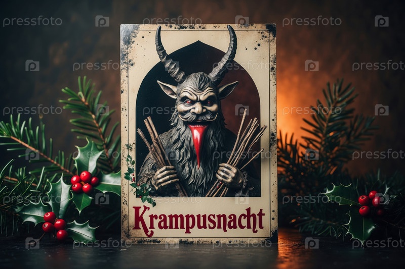 AI Generative Card Krampusnacht Ночь Святого Николая и жуткого монстра Крампуса Зимний праздник