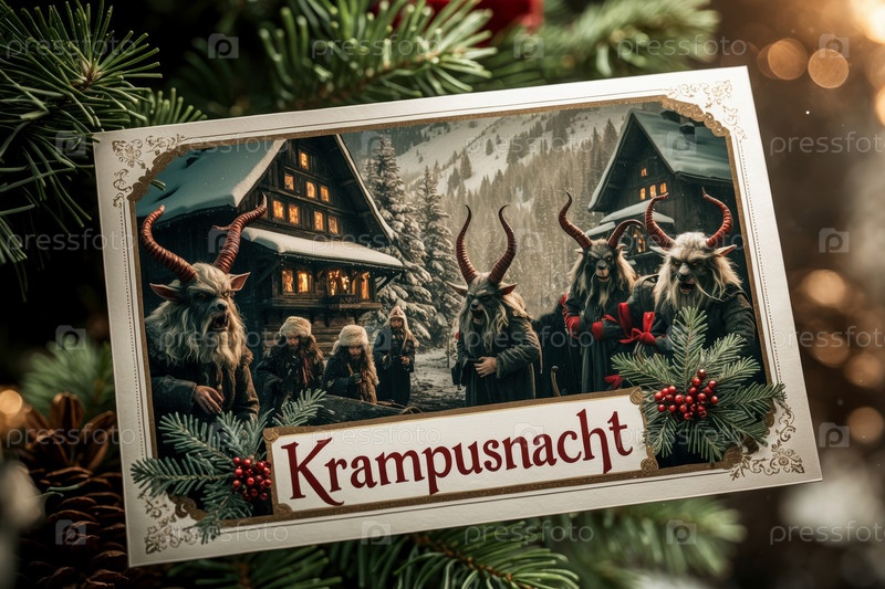 Ночь святого Николая и жуткого монстра Крампуса Зимний праздник AI Generative