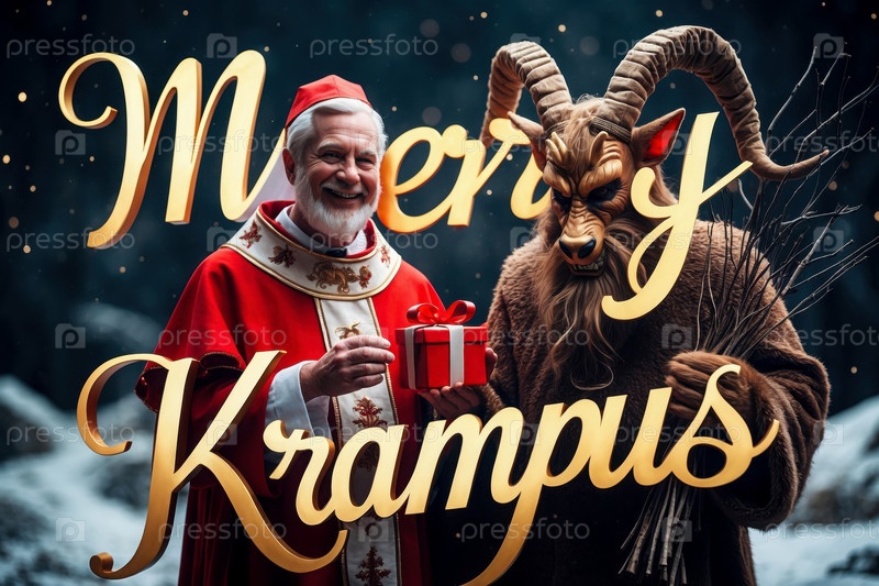 AI Generative Card Krampusnacht Ночь Святого Николая и жуткого монстра Крампуса Зимний праздник
