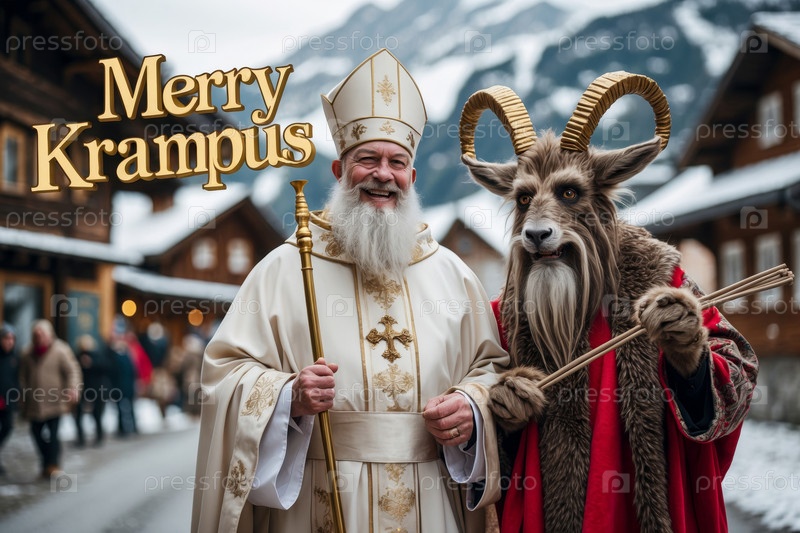AI Generative Card Krampusnacht Ночь Святого Николая и жуткого монстра Крампуса Зимний праздник