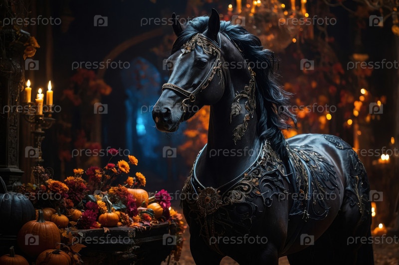 Величественный рысь на темном страшном фоне Хэллоуина тыква AI Generative