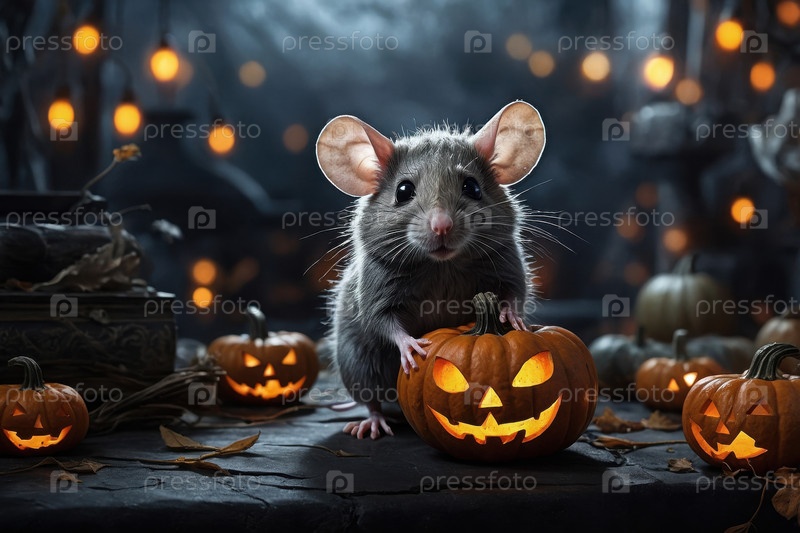 Милый пушистый мышь-зверь темный жуткий фонаж Хэллоуина тыква AI Generative