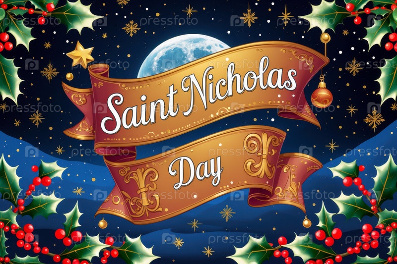 Открытка с праздничным баннером на православный праздник в честь Дня святого Николая AI Generative