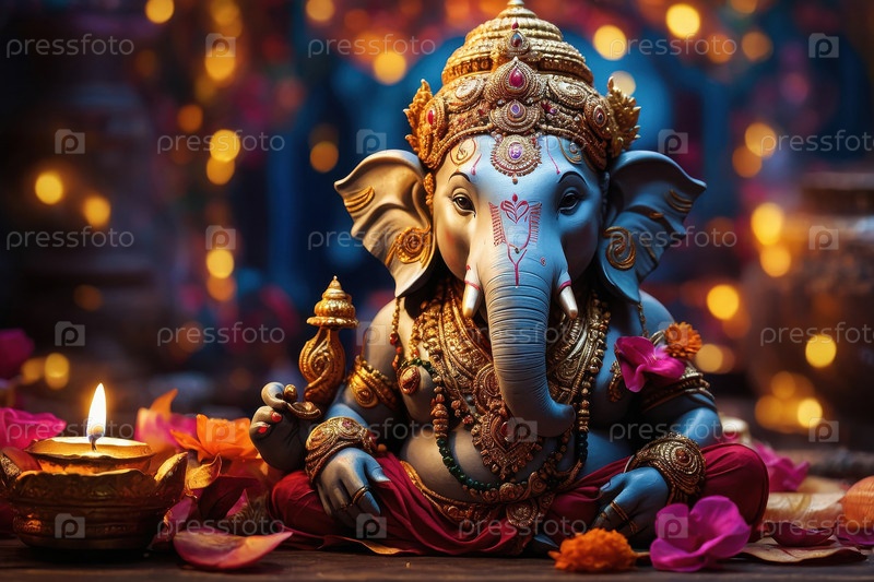 Индийский религиозный бог Ганеш на традиционном индуистском фестивале Дивали