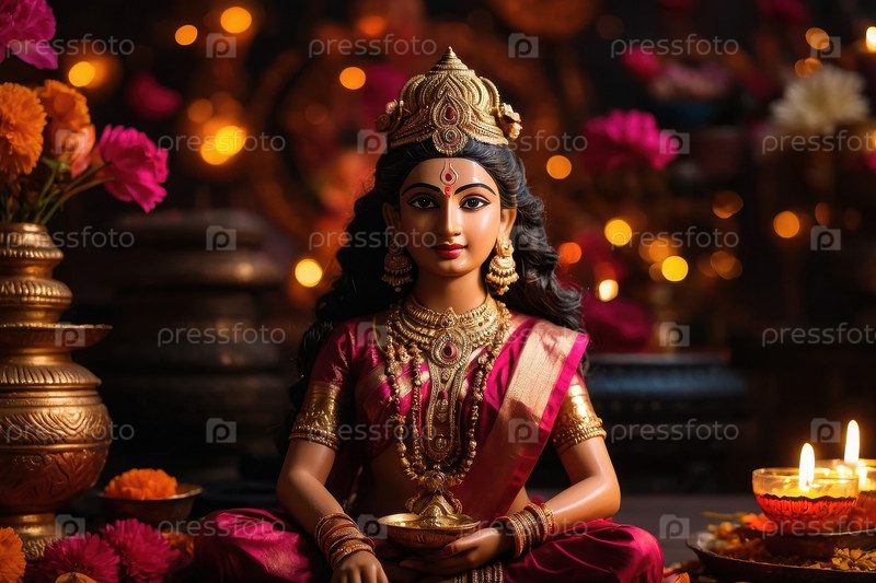 Индийская богиня религии Лакшми на традиционном индуистском фестивале Дивали