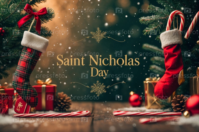 Открытка с праздничным баннером на православный праздник в честь Дня святого Николая AI Generative