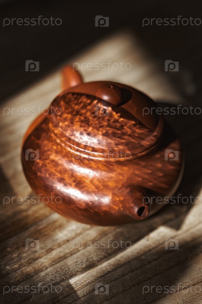 Красиво выполненный деревянный чайник с потрясающими природными узорами и богатой текстурой в теплом, привлекательном свете