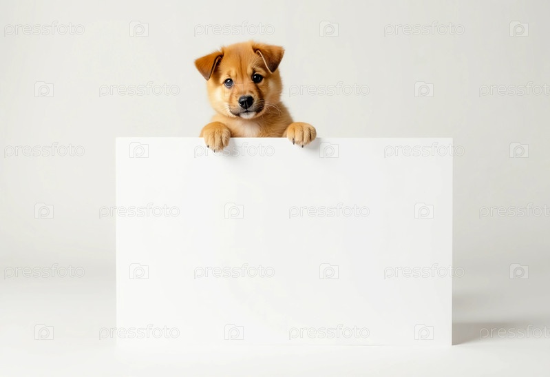 Очаровательный щенок заглядывает в большое пустое пространство, ожидающее художественных идей.Окруженный чистой, яркой средой, которая разжигает творчество