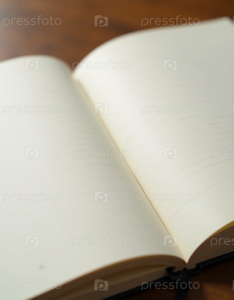 Пустой блокнот лежит на гладкой деревянной поверхности, предвосхищая идеи и заметки.Нежный солнечный свет улучшает пустые страницы, приглашая к творчеству и вдохновению