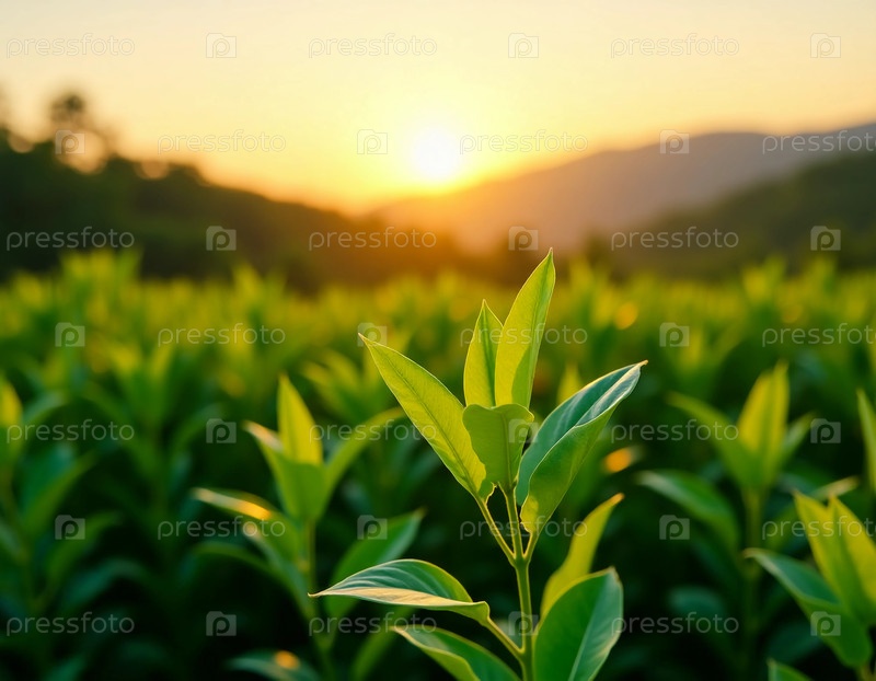 Золотой солнечный свет омывает пышные чайные плантации в захватывающих пейзажах Китая, Индии, Шри-Ланки, Кении и Индонезии, демонстрируя красоту природы и сельскохозяйственную щедрость генеративного ИИ