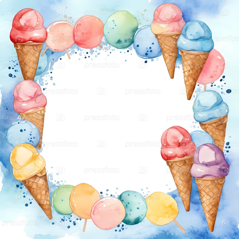 Очаровательный макет карточки мороженого с красочным акварельным дизайном с яркими шишками и игривыми укусами Генеративный ИИ