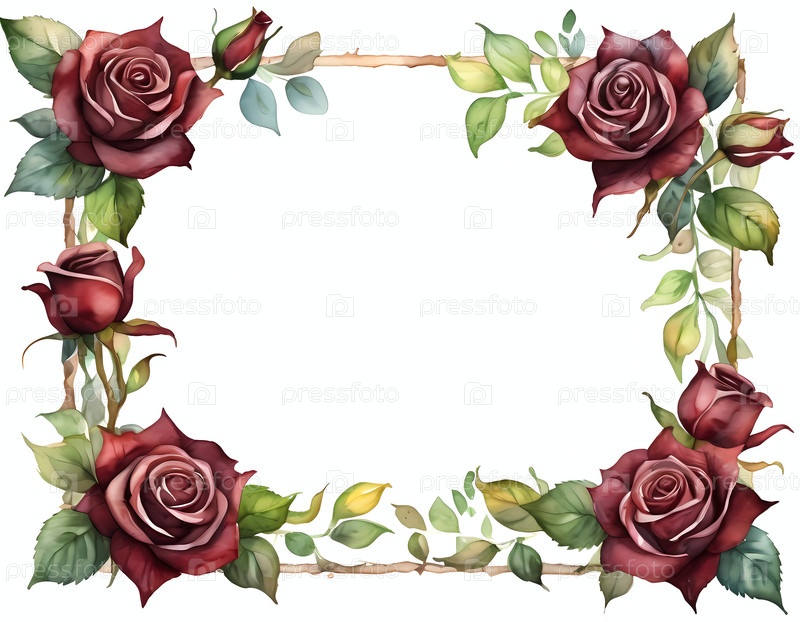 Красивые розы бургундского и красно-коричневого цвета создают элегантную границу для любого особого случая, идеально подходят для открыток и праздников в любой сезон