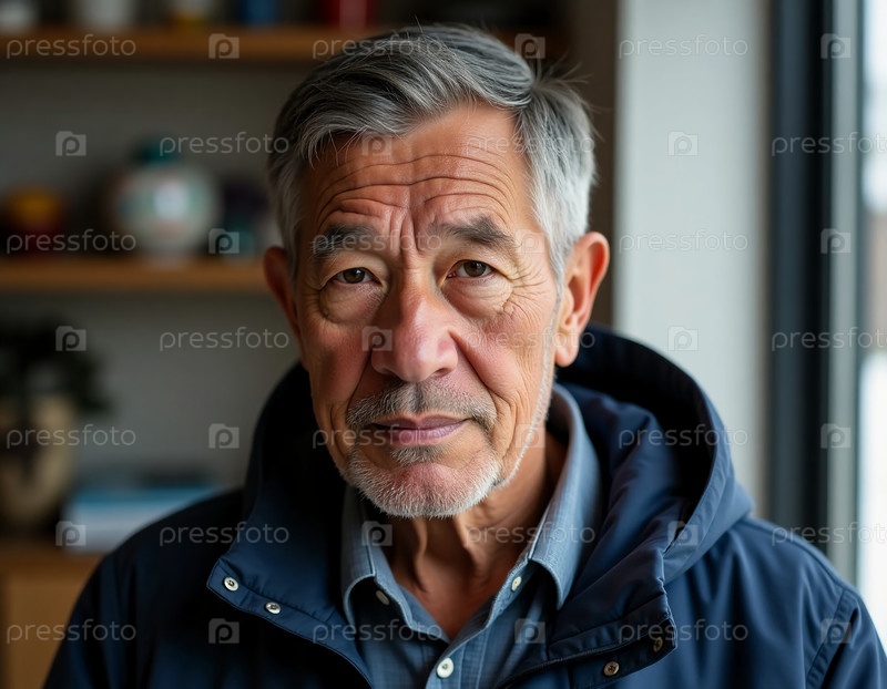 Пожилой коренной житель Аляски стоит с спокойным выражением лица, показывая глубину своего жизненного опыта и связь со своим богатым культурным наследием