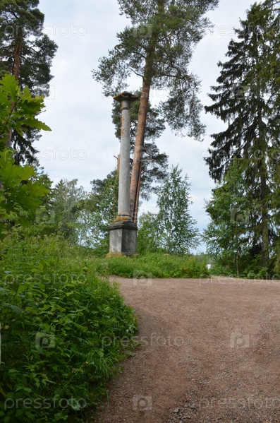 Колонна двух императоров - памятная колонна из мрамора зеленовато-серого цвета в честь императоров Павла I и Александра I в поместье Монрепо во Выборге, Ленинградская область