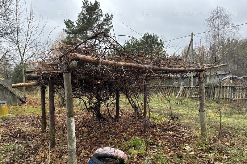 Виноградник в конце октября, после обрезки увядают листья