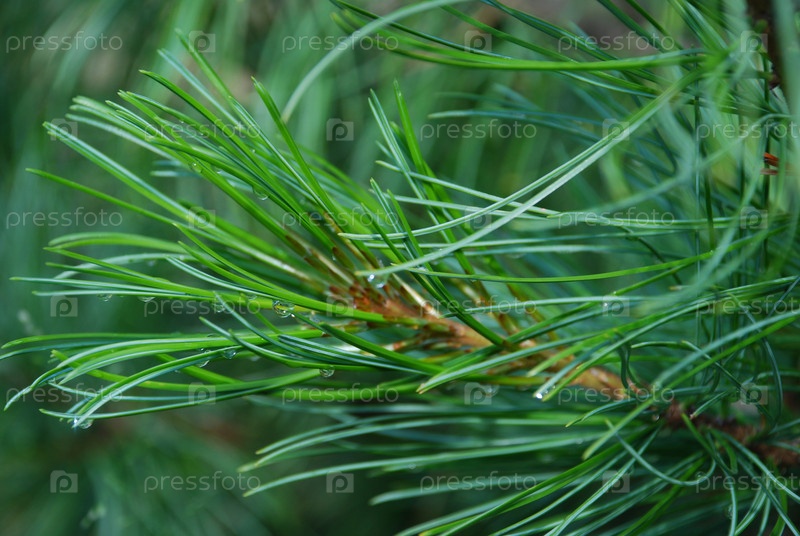 Сибирский кедровый сосны с каплями после дождя - ветвь с иглами