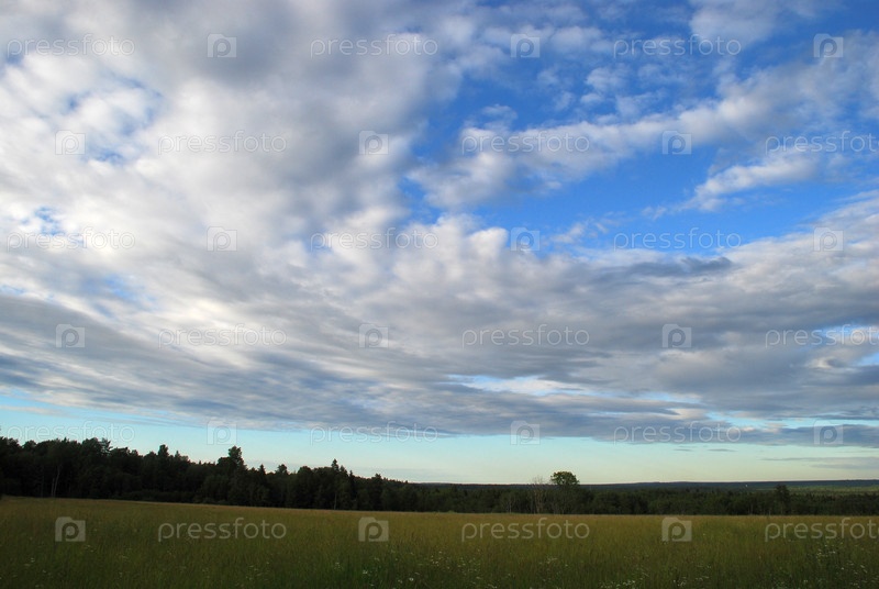 Зеленое поле под облаками А