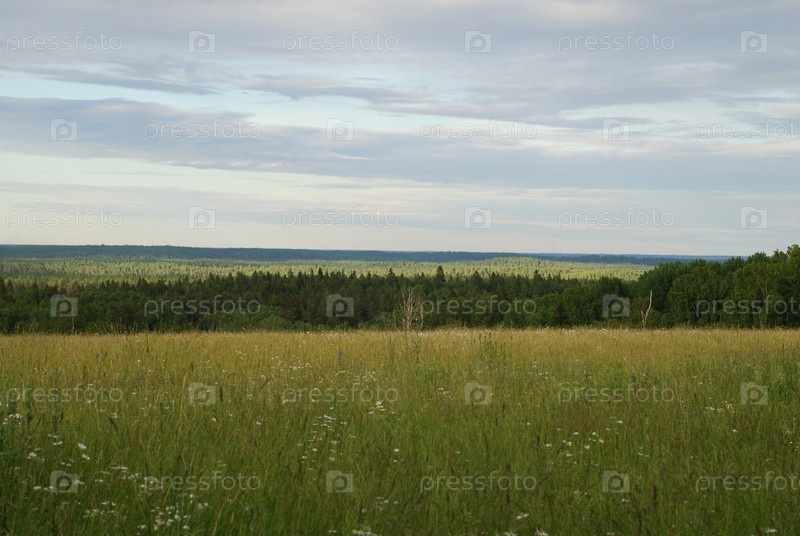 Зеленое поле под облаками А