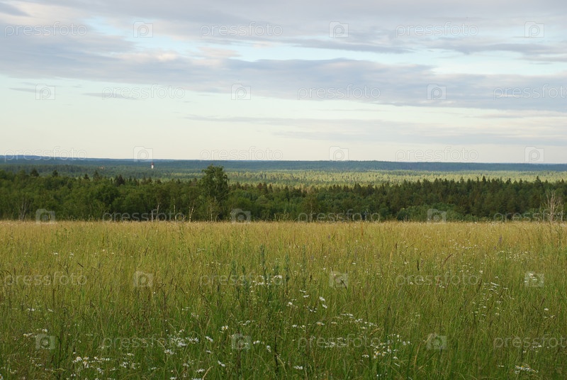 Зеленое поле под облаками А